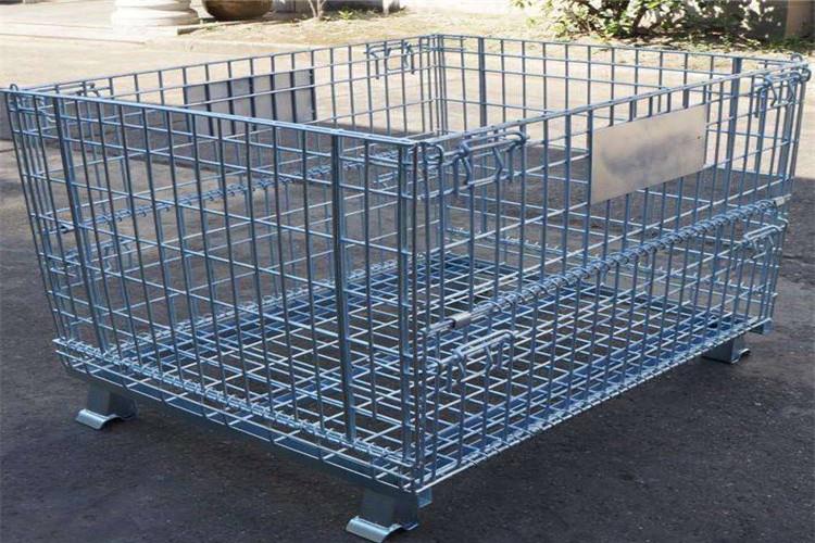 蝴蝶笼仓储笼采用钢材经冷轧硬化焊接而成,强度高,装载能力大,规格统一,容量固定,存放货物一目了然,易于库存清点,表面镀锌,美观,使用寿命长,采用国际标准,可与集装箱配套使用,提高空间利用率,可互相堆叠四层高,实现立体化存储,表面环保处理,卫生周转、存放回收均不污染环境,配合叉车、地牛、升降机、吊车等设备可进行作业,折叠式结构,回收成本低,是木质包装箱的替代产品,底部可安装轮子,工厂内部周转很方便。